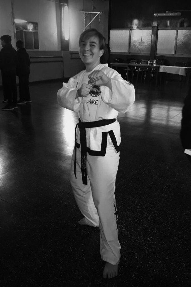 Realiza TaeKwondo desde los 11 años en un Gimnasio juntó a el vocal de la Escuela Pul Yiang Be, y su categoría es de juvenil junto a la graduación de 2do Dan.